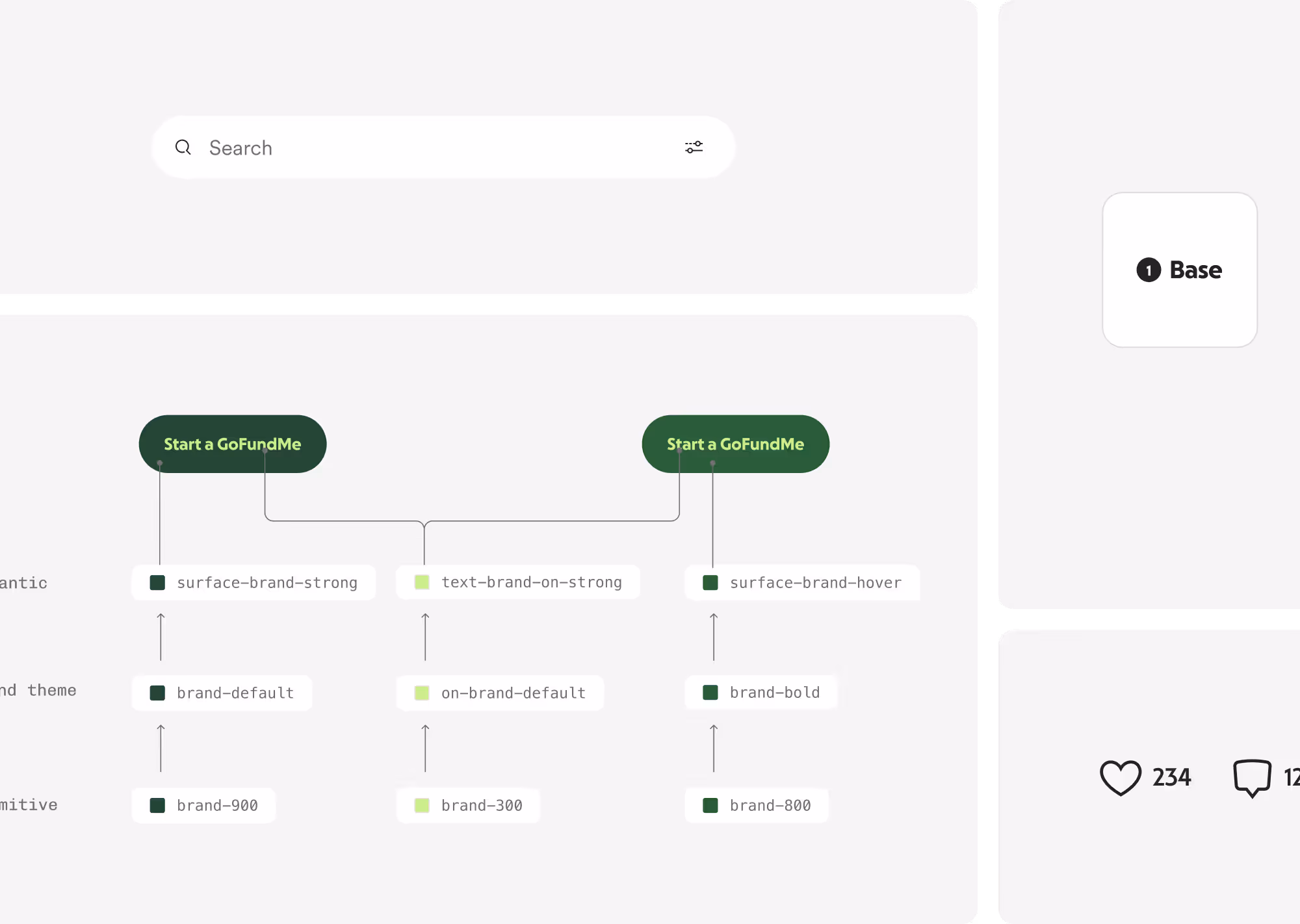 On the cusp of GoFundMe’s rebrand with GoFundMe Pro, I directed the rollout of a flexible, multi-brand, co-brand, and white-label–ready design token system.